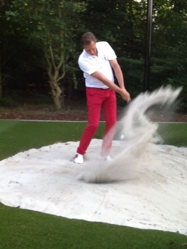 Naast een indoor swing studio, uitgerust met de meest moderne technieken, heeft hij buiten de beschikking over een grote en verwarmde kunstgras putting green en een aparte kunstgras pitching en chipping green met een echte bunker. Er is gebruik gemaakt van de speciaal kunstgras voor putting greens. Door de zogenaamde V-tufting geeft dit kunstgras een hele natuurlijke rol in alle richtingen.