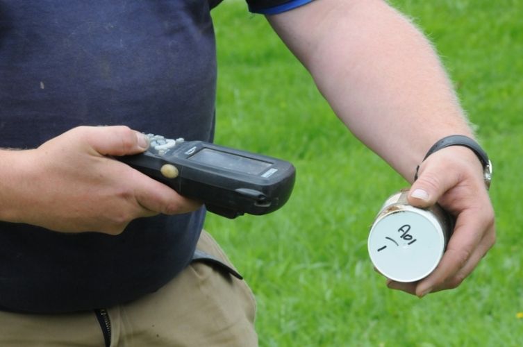 De monsterpotjes worden vervolgens van barcodes voorzien en ingescand met een Psion handcomputertje. Op die manier is meteen een GPS locatie aan het monster gekoppeld. Met de hand wordt de diepte genoteerd.