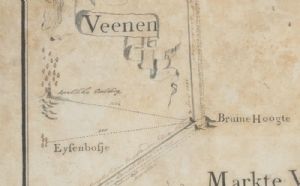 Op deze oude kaart staan drie boompjes ingetekend op de heuvel.