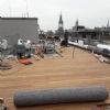 Strakke planning De uitvoering van deze speciale daktuin kent een logistieke uitdaging. Het pand ligt namelijk aan de Spuistraat in Amsterdam, op een steenworpafstand van de Dam. Er is nagenoeg geen depotruimte. De materialen moeten vanaf de straat het dak op gehesen worden. Daarvoor moeten vergunningen geregeld worden en de weg afgesloten worden. Een goede planning is met het drukke verkeer in de Amsterdamse binnenstad dus een absolute noodzaak.