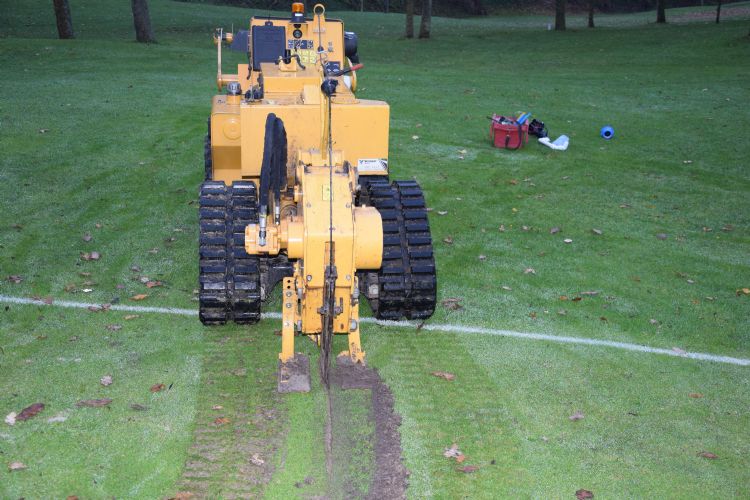 Bij de aanleg van het systeem werkt Van Oosterhout met twee teams. Eerst worden de greens en tees gedaan, vervolgens de pompinstallatie, hoofdleiding en besturing. De oude pvc-leidingen en kabels blijven in principe liggen; die worden door het bedrijf alleen naar boven gehaald als de medewerkers ze tegenkomen, maar worden niet opgegraven. De nieuwe leidingen en kabels worden zoveel mogelijk sleufloos ingebracht met speciale machines. Indien nodig is een graafmachine beschikbaar. Op Ockenburgh ligt tussen de baan en het clubhuis een fietspad, waardoor een gestuurde boring nodig is. 'Deze moeten we door derden laten doen, maar verder zijn we helemaal zelfvoorzienend', legt Van Beers uit. 'Overal hebben we eigen machines voor en daar kunnen we alle kanten mee op.'