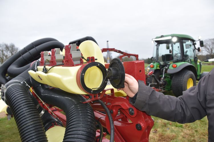 Het gaat om een getrokken machine en Van Berkel gebruikt hiervoor een 33 pk John Deere als tractie. Na zijn eerdere, zelfrijdende spuitmachine was dit wel wennen. Van Berkel: 'Deze combinatie is bijvoorbeeld totaal drie meter langer. Voordat we met een zelfrijdende machine werkten, hadden we ook al een getrokken spuitmachine. Maar die kun je absoluut niet vergelijken met wat we nu in de loods hebben staan. Dat begint al met de aanbouw achter de tractor, nu met een beperkt aantal slangen. Een dikke kabelboom heeft plaatsgemaakt voor slechts enkele draden. Dit komt doordat de kranen en de computer die de machine aanstuurt op de Hardi-spuitmachine zijn opgebouwd.' Ook een schuimmarkeur is nu overbodig, want een gps-systeem vertelt Van Berkel waar hij moet rijden. Bij een overlapping sluit het systeem automatisch een sectie met luchtondersteunde spuitdoppen af. Het systeem waarschuwt ook wanneer er een abnormale druk heerst in een van de vijf spuitsecties: zoiets kan op een verstopte spuitdop duiden. De spuitdruk is afhankelijk van de gewenste afgifte van het aantal liters per hectare en de snelheid waarmee je rijdt.