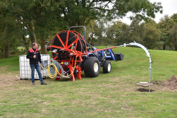 Homburg Holland had de Hollandse Greenkeeping Maatschappij (HGM) gevraagd een demonstratie te mogen geven van zijn nieuwste drainagereiniger, de Blizz. De Greenkeeper-redactie schoof aan om dat van dichtbij mee te maken. Eira constateert meteen een grote verandering ten opzichte van eerdere uitvoeringen van deze machine: 'Vanwege zijn formaat is hij prima geschikt voor golfbanen. Je kunt hem in je eentje bedienen dankzij de afstandsbediening. Daarmee kun je alle functies in- en uitschakelen. Zo kun je in je eentje vanaf de oever de spuitkop aan de lange mechanische begeleidingsarm gemakkelijk invoeren in de eindbuizen van de drainage. Vanuit die positie stel je de reiniger dan in werking. Eerder moest je daarvoor wel met zijn tweeën zijn. Ook het terugtrekken van de slang met de spuitkop via de lange gebogen arm regel je nu op afstand.'