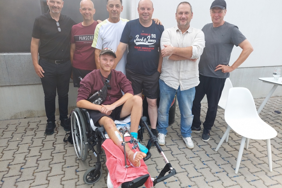 Het Brunssumse greenkeepersteam bij de aflevering van een nieuwe machine