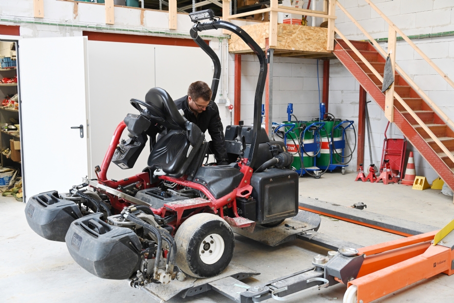 Antonio Carraro-tractor 42 x Club Car-golfkar Ford 7810-tractor Holder A760-tractor 3 Honda self-propelled maaier John Deere 4066R-tractor John Deere 855 mower-tractor Kubota fertilizer spreader 2 Kubota RTVX1110 utility vehicle Merlo TF42.7 telehandler New Holland TL90-tractor Redexim 1600 overseeder Shelton 3T GBD trench digger 4 Stihl BR600 backpack blower Stihl KM 94 RC-E combi system 2 Stihl FS461 C-M/L brush cutter 2 Stihl HS 82 R hedge trimmer 3 Stihl MS 194 C chainsaw 3 Toro Greensmaster 3400 Triplex greens mower 3 Toro Greensmaster 3400 Triplex tees and surround mower Toro Reelmaster 5510 fairway mower Toro Groundsmaster 4000D rough mower Toro Greensmaster Flex 21 greens mower 2 Toro walk-behind greens mower 2 Toro Greensmaster 1026 tee mower 3 Toro Hoverpro 550 bunker edge mower Toro MultiPro 5800 self-propelled sprayer 3 Toro ProStripe 560 2 Toro Workman GTX utility vehicle 3 Toro Reelmaster 5010H fairway mower Toro SandPro 5040 bunker rake Toro ProForce towable blower Toro Pro Core 648 greens aerator Toro Workman HDX 4X4 utility vehicle Wiedenmann Mega Twister blower
