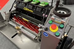 De engineers van Foley zijn aan de slag gegaan en in 2023 was het eerste prototype gereed. Deze eerste versie werd getest in Amerika en Engeland. Naar aanleiding van de feedback is onder andere de hellingshoek waarop de maaiers erop gereden worden aangepast, zodat de maaier beter gepositioneerd staat. 'De ophanging van de elektromotor op de slijpbank is ook aangepast en daardoor gebruiksvriendelijker geworden', vertelt Spek.