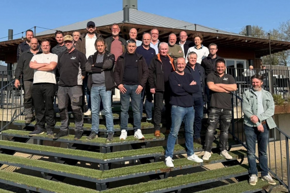 Op de hier afgebeelde groepsfoto staan de hoofdgreenkeepers van de Hollandsche Greenkeeping Maatschappij (HGM) die deelnamen aan het jaarlijkse overleg op Golfpark Almkreek.