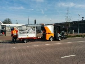 Chauffeur Louis is tevreden met zijn nieuwe werkplek en dirigeert de veegmachine met speciaal aan te koppelen aanhanger dagelijks naar de binnenstad en winkelcentra in de omliggende dorpskernen. De uiterst wendbare veegmachine is bij uitstek geschikt voor het verwijderen van zwerf- en straatafval en de aanhanger is ideaal voor opslag en transport van het afval uit de prullenbakken.
