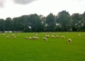Proef met natuurlijke grasmaaiers op velden in Purmerend |