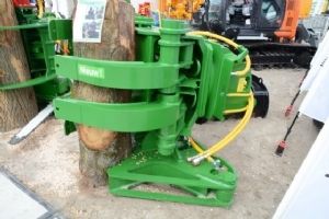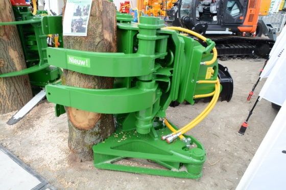 Groeneveldt Grijpers liet begin deze maand op de Technische Kontakt Dagen in Almere een nieuwe prototype zien van een bomengrijper. Het unieke van de grijper is dat het een combinatie is van twee grijpers en zo vervormde stammen nog steeds goed kan klemmen.