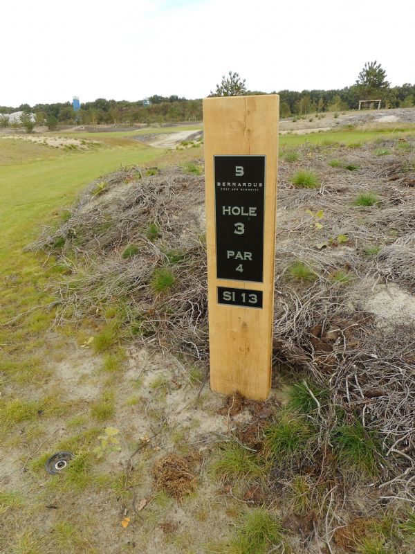 Op de eerste drie holes zien we eigenlijk al alle kenmerken van de hele baan: licht glooiende fairways met plateaus en valleitjes, veel en grote bunkers op de fairways en bij de greens met rafelige wanden, fairways gescheiden door heide (in aangroei) en gaspeldoornstruiken, maar ook fairways die in elkaar overlopen, af en toe water, flink glooiende greens van ongeveer 30 bij 30 m (vergelijkbaar in ondulatie met Phillips’ andere ontwerp in Nederland, De Lage Vuursche) en kort gemaaide steile runoffs bij de greens. Bernardus heeft veel weg van een Engelse heidebaan maar dan met her en der water. Er zijn enkele bestaande bomen uit het voormalige agrarische landschap gespaard gebleven en er zijn enorm veel bomen geplant (sommige van een formaat van zo'n 5 m hoogte) maar die staan vooral langs de grenzen van de baan.