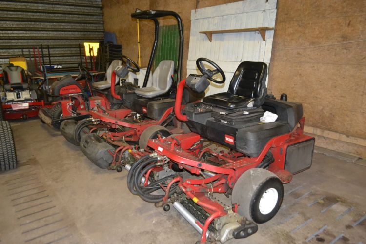 Toro greenmaaier Toro voorgreen/teemaaier Toro fairwaymaaier Toro roughmaaier Jacobsen roughmaaier Toro bunkerhark Shibaura tractor Toro vervoerder Ferbo regenhaspel