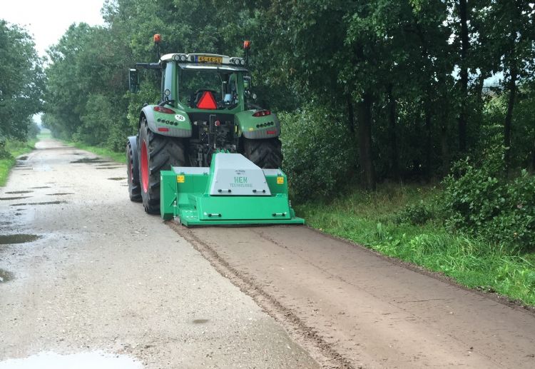 Green Technology Janssen uit Roermond werkt met de WPF-modellen van het Duitse HEN Technologie. GTJ levert sinds 2016 de HEN WPF 200, een machine om halfverharding in één werkgang weer egaal te maken. Het doel van deze machine is om beschadigde toplagen van halfverharding weer te herstellen. Bij schade valt te denken aan uithollingen, sporen en gaten in de paden. In de praktijk wordt er bij die problemen vaak voor gekozen om simpelweg nieuw materiaal aan te brengen, maar Janssen beklemtoont dat dit niet de juiste oplossing is. 'Bij die werkmethode ontstaat namelijk nauwelijks of geen binding tussen de originele toplaag en het nieuw opgebrachte materiaal', aldus Peter Janssen van GTJ. 'Die goede hechting komt er pas nadat de toplaag is losgemaakt en gemengd. De HEN WPF 200 realiseert dit in één werkgang. Een traploze frees draait tegen de rijrichting in om het materiaal op te nemen, tot 12 centimeter diepte. Het materiaal wordt vermengd en afgelegd, waarbij grof materiaal beneden afgedekt wordt met een toplaag van fijner materiaal. Een ingebouwd schuifbord vlakt de oppervlakte uit en dicht de gaten.' De ingebouwde trilplaat verdicht de bovenlaag in dezelfde werkgang, waardoor het perceel direct weer begaanbaar is voor voetgangers en voertuigen. Het resultaat van die bewerking: een pad dat weer als nieuw is. Door de intensiteit ligt de werksnelheid op circa twee kilometer per uur. Deze machine heeft een werkbreedte van twee meter, maar sinds vorig jaar is er ook een broertje: de WPF 100 met een werkbreedte van 1 meter. GTJ toont beide modellen op GroenTechniek Holland in Biddinghuizen.