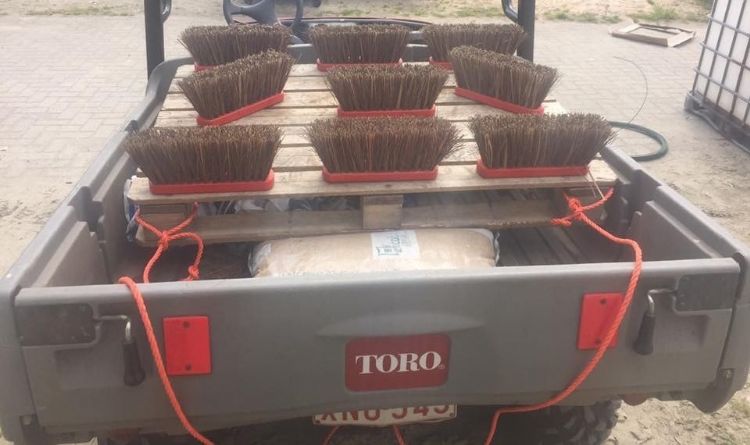 De Schutters idee is een 'goedkope' inveegborstel die je met beperkt budget kunt samenstellen. Hij vertelt: 'Ik heb zelf in het verleden regelmatig wat bij elkaar geknutseld, omdat het budget het niet toeliet om een geavanceerde en specifieke machine te kopen. Zo heb ik een aantal jaar geleden, toen ik werkte als greenkeeper op golfclub Breendonk in België, een inveegborstel in elkaar geknutseld, en het resultaat was super. Ik heb een sleepmat gemaakt omdat er geen budget was voor de duurdere variant. Voor een kleine 60 euro maakte ik een sleepmat om zand in te borstelen na het prikken. Ik wilde een sleepmat maken die licht genoeg was om zelf te tillen en de borstels mochten zeker niet te veel stress opleveren voor de grasplant.'