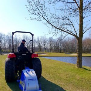 Nicky werkt voor de Hollandsche Greenkeeping Maatschappij. HGM heeft meer dan twintig golfbanen in onderhoud. Het bedrijf heeft dus kennis en ervaring in overvloed, én een flink machinepark. Sinds kort heeft HGM daar de Imants Rootpruner aan toegevoegd.