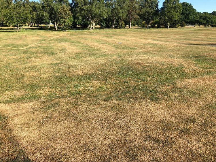 Droogtestress op een niet-beregende fairway, juni 2020