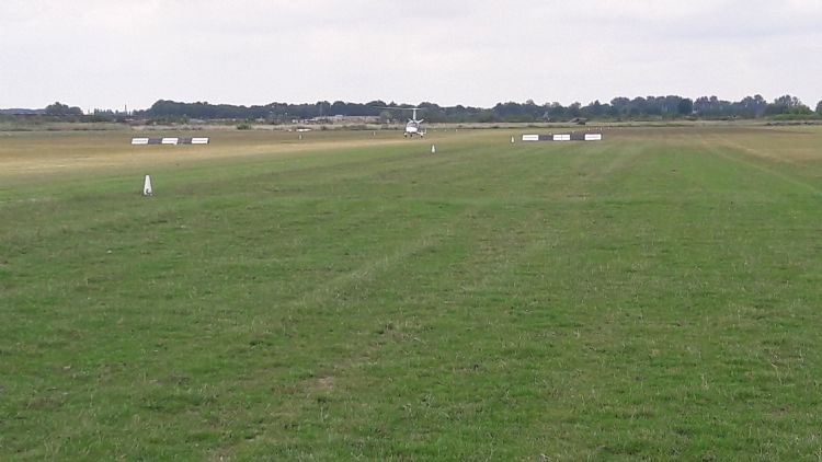 | | Maarten Goeree van Traas en Ovaa Sport: 'De start- en landingsbaan steekt af tegen de rest van het gras op het vliegveld in deze droge, hete tijd.' |