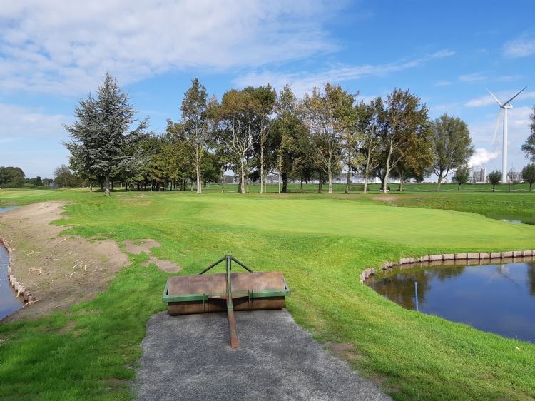 Hoofdgreenkeeper Leon van Dijk maait de nieuwe hole 15 in elk geval het eerste half jaar met de hand. Aan de rand van de nieuwe hole vertelt hij 'supertevreden' te zijn met het resultaat. 'Het was hier één vlak stuk. Door de grond van de vijver hebben we nu meer reliëf en is de hole een stuk moeilijker geworden. Voor een korte par-3 is hij heel uitdagend.' Van Dijk heeft de hole tijdens de ingroeifase goed in de gaten kunnen houden. De green was snel groen, vertelt hij. 'Vier dagen na inzaai stond het eerste gras er al op en na twee weken maaiden we al. Momenteel maaien we hem op 5 mm.' De spelers op Kleiburg moeten nog even geduld hebben voor ze deze hole kunnen testen: pas vanaf 2021 is hij speelbaar. Van Dijk: 'Een bewuste keuze, want als we nu schade zouden hebben, herstelt dat in de winter niet meer. Daarom laten we hem voor nu zo, want hij ligt er al mooi bij.'