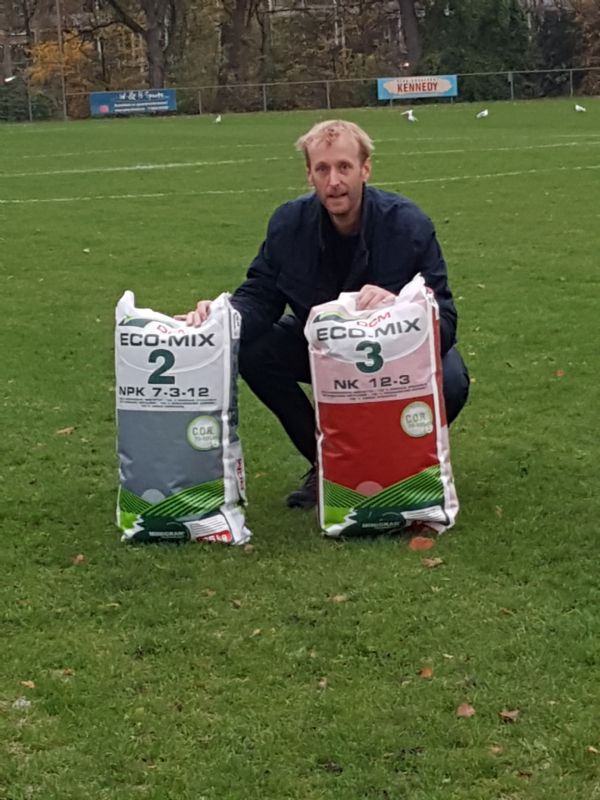 Laan: 'DCM heeft een heel productgamma van 100 procent organische meststoffen voor de tuinbouw, RHP-gecertificeerd. Hieronder vallen ook substraten voor verschillende teelten. Het is een kleine stap om deze producten eveneens beschikbaar te maken voor de sportvelden-, golfbanen- en hovenierssector. Daar zijn we al mee bezig. Ecor 2 en 3 zijn onlangs gepositioneerd in de markt. Ecor 3 heeft een NK van 12-3. Dit is dus een stikstofmeststof die vooral in het voorjaar op de green of op het sportveld wordt gebruikt. Ecor 2 heeft een NPK van 7-3-12 en bevat veel kalium. Deze wordt in het najaar op sportvelden en gazons toegepast. Met slechts twee producten kunnen greenkeepers, fieldmanagers en hoveniers het hele jaar door volledig organisch bemesten - het bewijs dat je niet dertig producten op voorraad hoeft te hebben.'