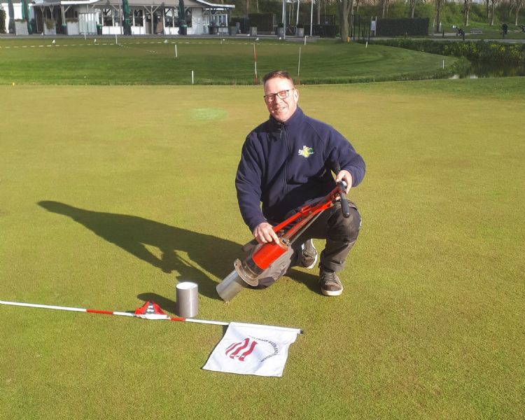 'Het valt me heel erg mee hoe onze baan uit de winter gekomen is. Dat komt voornamelijk door de zachte winter. We hebben een heel droge februari en maart gehad en afgelopen maart was het relatief warm. Vanwege de drukke bezetting had ik eigenlijk wel slechte greens verwacht dit voorjaar, maar we zijn er wonderwel heel goed doorheen gekomen. Best grappig: normaal gesproken is het elk jaar een strijd om de baan in orde te krijgen voor de eerste competitiewedstrijd. Nu hebben we eindelijk een keer ideale speelcondities, maar is er geen competitie!' 'We merken er in het werk dus weinig van, al liggen we wel onder de loep bij de boa. Golfbaan Waterland ligt vrij dicht tegen de stad aan en de baan is vanaf de weg goed te overzien. We letten dus op dat we de regels naleven. We hebben hier een heel actieve golfschool, met normaal gesproken door de week meerdere groepen van twaalf of dertien man. Die groepsgrootte hebben we wel moeten terugbrengen. En de aantallen mensen op de putting-/chippinggreen moeten we handhaven. In die zin merken we wel iets van de maatregelen.'
