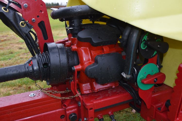 Stievy van Nijnatten, verkoper bij Nouws Mechanisatie in Rijsbergen, adviseerde Van Berkel bij het realiseren van zijn specifieke wensen. Hij vertelt: 'Het moest een machine zijn met meer capaciteit en luchtondersteuning. Als Hardi-dealer hebben we contact gezocht met Hardi-distributeur Homburg. Met hen kwamen we uit bij deze getrokken Hardi Zaturn met een tankinhoud van 1.000 liter. Deze spuitmachine, die je wel meer op golfbanen aantreft, is voorzien van een tandemstel met 12 inch velgen en vier circa 30 cm brede en 66 mm hoge banden. Zo'n tandemstel is behalve voor de bodemdrukvermindering ook noodzakelijk vanwege ondulaties op golfbanen. De machine werd voorzien van Optimus-blaasmonden voor de luchtondersteuning. Tijdens de bespuiting met een zeer fijne nevel blijft het gewas hierbij rechtop staan.' Van Berkel wees me eerder op de ongekend zware vloeistofpomp. Wat is hiervoor de reden? Van Nijnatten zegt hierover: 'Feitelijk zijn alle Hardi's voorzien van deze zware vloeistofpomp. Daardoor is het leveren van reserveonderdelen nooit een probleem. De hoge capaciteit van de vloeistofpomp zorgt allereerst voor voldoende roering van de tankinhoud. Verder is er bij deze machine - onafhankelijk van de rijsnelheid - sprake van een automatische afgifteregeling van spuitvloeistof. Van tevoren stel je dus bijvoorbeeld in dat je 800 liter op een hectare wilt spuiten. De automatisering realiseert dat dan. Als je voor een (te) hoge rijsnelheid kiest, kan een te lichte pomp voor beperkingen zorgen.'