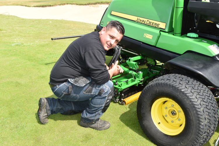 SBA Golf & Groen was al tijdens de start van de golfbaan in 2007 betrokken bij de aanleg en later ook bij het onderhoud. Kramer is sinds 2017 ongeveer twintig uur per week te vinden op de baan, geholpen door vaste crewleden, die hier allen vrij kort na de aanleg aantraden. Zoals greenkeeper Lars Raes, die bij afwezigheid van Kramer het team aanstuurt, en monteur Edwin. De laatste vertelt: 'Eén van de waardevolle zaken voor mij is dat ik de vijf maaikooien van de Precision Cut 8700A niet hoef te verwijderen voor onderhoud. John Deere heeft ze kantelbaar gemaakt, zodat je vrijwel overal bij kunt komen. Hartmann is gespecialiseerd in deze machine en heeft vandaag enkele delen van de workshopmanual nog eens grondig met me doorgenomen. Daarbij wees hij me op cruciale punten, zoals bouten die je met een juist moment moet aantrekken. Ook attendeerde hij me op een aantal andere punten waaraan je regelmatig speciale aandacht moet besteden. Hartmann is mijn telefonische gesprekspartner als de onderhoudsmanual geen antwoord geeft op mijn vragen. Hij kent deze machine door en door. Hij is mede dankzij dit soort bedrijfsbezoeken op de hoogte van de praktijkervaringen in vele landen. Ook staat hij in nauw contact met de ontwikkelaars van de machines. Door deze kennisoverdracht wordt de kwaliteit van het onderhoud verbeterd en vermindert de kans op storingen en uitval.'
