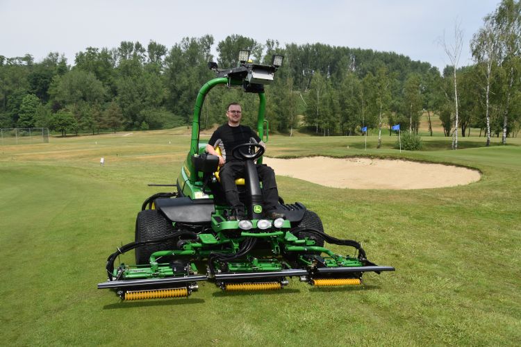 SBA Golf & Groen is al geruime tijd verantwoordelijk voor het onderhoud van Golfbaan Brunssummerheide. Wat vormde de aanleiding om juist deze John Deere-fairwaymaaier aan te schaffen, de Precision Cut 8700A, die uitgerust is met Terratronic-software? Hoofdgreenkeeper Jeremy Kramer licht toe: 'De eigenaar, Fons Heuts, wil hier een topbaan zien. Hij heeft SBA Golf & Groen opdracht gegeven om de benodigde kennis en kunde te leveren en het onderhoud naar een hoger niveau te tillen. Daartoe investeert hij ook in de machines die we hier inzetten. De golfclub bezit bijna alles wat nodig is voor het onderhoud, tot een kraan en een minikraan aan toe. Hier staan ook twee Toro-fairwaymaaiers in de loods en verder heeft ongeveer de helft van alle maaimaterieel zo'n groene kleur. Onze nieuwe fairwaymaaier van John Deere geeft niet alleen een fraai maaibeeld, maar heeft ook een hoge capaciteit. Dat laatste was één van de voornaamste redenen om de machine aan te schaffen. Ook het vertrek van twee greenkeepers die een andere betrekking kozen speelde een rol; dat leverde namelijk meteen capaciteitsproblemen in de menskracht op. De beslissing om tot aanschaf over te gaan, werd tamelijk snel genomen!'