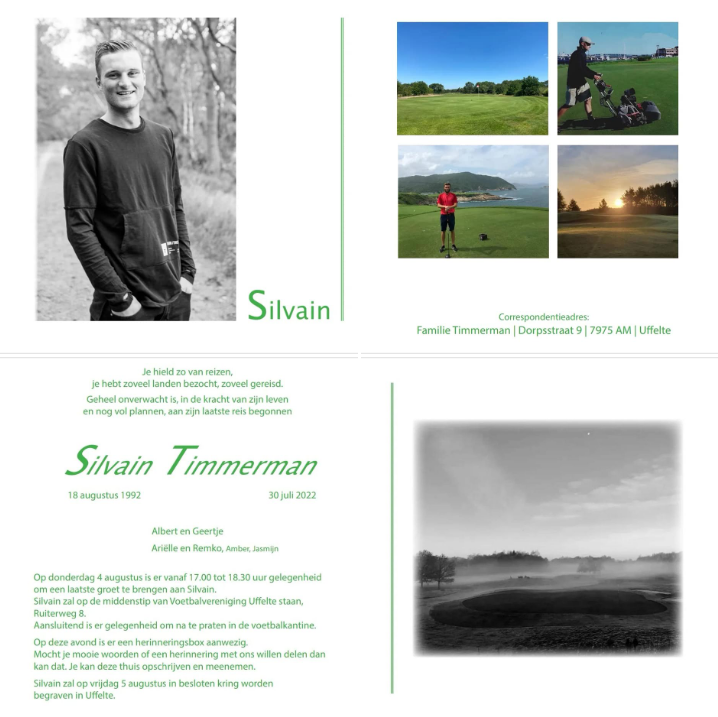 Op donderdag 4 augustus is er vanaf 17.00 tot 18.30 uur de gelegenheid om een laatste groet te brengen aan Silvain. Op de rouwkaart van de jonge greenkeeper is te lezen dat het afscheid plaats zal vinden op de middenstip van Voetbalvereniging Uffelte staan, Ruiterweg 8. Aansluitend is er gelegenheid om na te praten in de voetbalkantine. Op deze avond is er een herinneringsbox aanwezig. Mooie woorden en herinneringen hierin zijn welkom aldus de familie Timmerman. Op vrijdag 5 augustus wordt Silvain in besloten kring begraven in Uffelte.