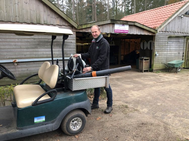 Hij loopt nu ruim twintig jaar rond op het golfpark. Als jongeman kwam hij al in het openluchtzwembad dat op dit terrein gevestigd was voordat de golfbaan aangelegd werd. De huidige waterpartij wordt met hetzelfde grondwater en dezelfde pomp gevuld als het toenmalige openluchtbad. Voor de golfbaan is het nu de bron om de baan te beregenen. De Ridder herinnert zich nog goed dat veel oud materiaal van het gesloopte zwembad gewoon onder de grond was gestopt en weer tevoorschijn kwam toen de appartementen en het hotel aan de randen van de golfbaan gebouwd werden. Die aanwezigheid van bewoners en hotelgasten is een van de redenen waarom Golfpark Soesterberg al langere tijd deels werkt met elektrische machines. Een bosmaaier, een bladblazer en een greenmaaier worden aangestuurd door accu's en zijn daardoor minder luidruchtig. Zodra iedereen wakker is, worden ook de apparaten met dieselmotoren gebruikt.