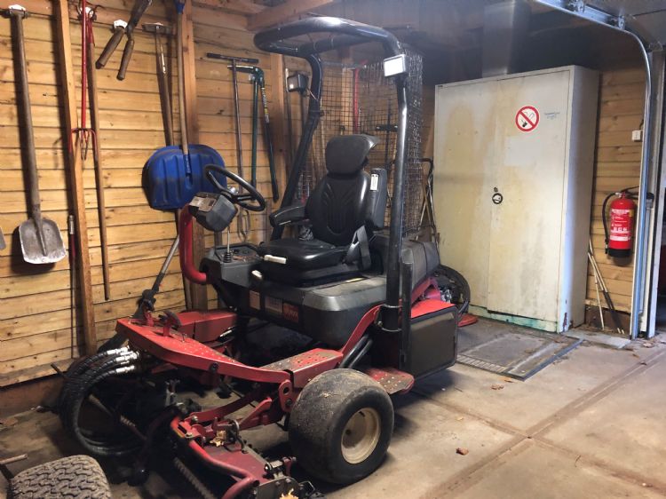 Toro Triple-maaier 3250 Toro-bunkerrake Sandpro 3040 Toro Proline H800 Toro Greenmaster Eflex 2100 Iseki-trekker Landleader 247 Clubcar Turco-bezander Widespin 1530 Veldspuit Klara 406 Scotts-kunstmeststrooier Husqvarna Flymo GX560 Stihl-bladblazer BR700 Stihl-bladblazer (elektrisch) BGA100 Stihl-bosmaaier (elektrisch) FSA 130 Wiedemann-bladblazer Whisper Twister Compressor Airpress Solo-rugspuit Toro Trans Pro 100-aanhanger Metalen sleepmat