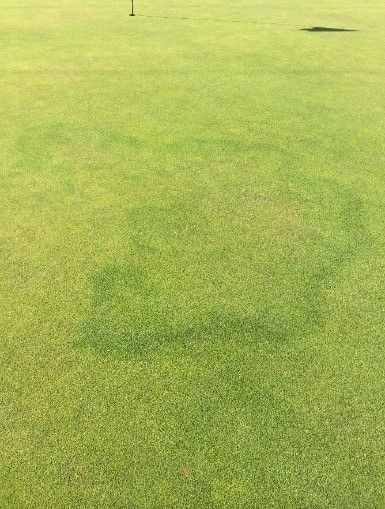 A: 'Het is een gedeelte van de grasmat dat uitdroogt en moeilijk opnieuw te bevochtigen is, zelfs niet met een grote hoeveelheid water. Meestal is de bodem op deze plekken irreversibel. Dat is waterafstotend en dat betekent dat de bodem heel moeilijk water kan opnemen. Je ziet dit aan onregelmatig gevormde stukken dood of verwelkt gras. Deze droge plekken zijn een bron van zorg voor greenkeepers, vanwege de verminderde visuele kwaliteit en prestaties van het speeloppervlak. Het onderhoud van golfbanen is niet eenvoudig. Door het veranderende klimaat zullen we in de toekomst waarschijnlijk te maken krijgen met meer en langdurigere periodes van grote droogte.