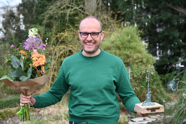 Daan Bleichrodt werd gisteren bij IVN Natuureducatie gekroond tot Greenfluencer 2022. Hij kreeg de nieuwe trofee uit de handen van redacteur Willemijn van Iersel en van directeur Groenkeur Dick Oosthoek.
