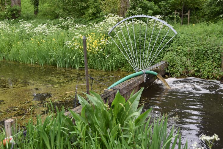 Water wordt vanuit de ringsloot in de wetering gepompt.