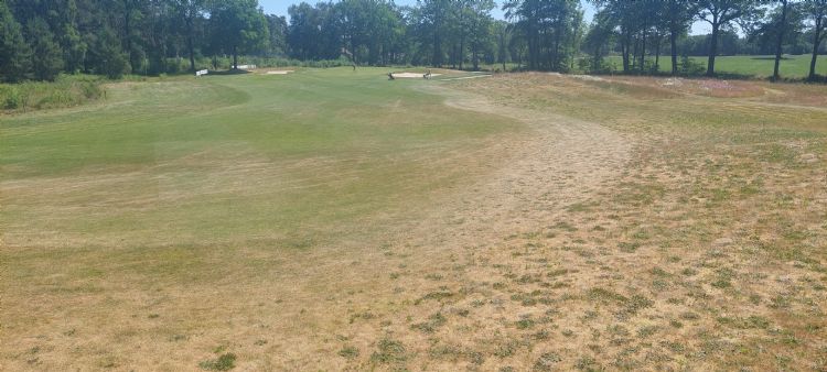 Inmiddels is de uitdaging om het gras in leven te houden de eerste prioriteit. De verschillende geeltinten zijn duidelijk zichtbaar en de spelers op de greens willen meer water zien. Hoewel verkleurd gras niet per se slechtere speelcondities met zich meebrengt, is er in Nederland nog geen acceptatie van yellows. En dat terwijl de Zweden en Denen al een sellingpoint maken van duurzaamheid, biodiversiteit en minder beregenen ...