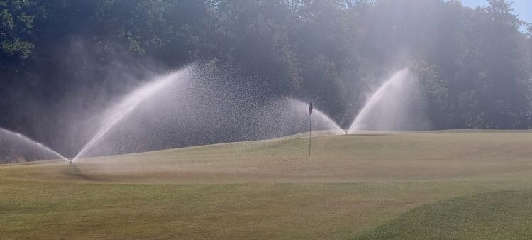 Tijdens mijn werkbezoek werd ik al gebeld over preventieve maatregelen die genomen moesten worden, omdat er wat local dry spots ontstonden op de greens. Op de fairways lijken de genomen maatregelen om het waterpeil met 60 cm te verhogen een positief effect te hebben gehad, maar op deze hoge zandgrond zie je wel dat de groei eruit gaat bij deze verdampingswaarden. Bij de voorbereidingen voor het meerdaagse golftoernooi Achterhoeks Open was dat een voordeel om de baan optimaal te kunnen prepareren met minimaal beregenen.