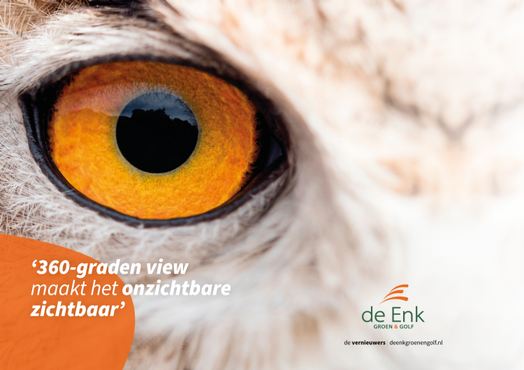 In de nieuwe campagne vergelijkt het bedrijf zich met een uil. Net als de uil beschikt De Enk Groen & Golf over een 360-gradenbeeld van de golfbaan. Dit komt tot uiting in het gebruik van de Greenviewer, een slimme applicatie die gebaseerd is op 3D-technologie en waarmee het onzichtbare zichtbaar wordt gemaakt via satellietsoftware, grondscans en drones. Minieme verschillen in hoogte, temperatuur en vochtigheidsgraad kunnen zo opgespoord worden. Dit maakt het mogelijk om de golfbaan interactief te beheren en data vast te leggen. Hierdoor kunnen golfbanen en groenprojecten volledig digitaal en interactief beheerd worden. 'Dat levert een enorme verduurzaming op. Tien jaar terug zette je de sproeiers 's ochtends om vier uur aan en vervolgens werd de hele baan beregend. Dat is verleden tijd met de huidige techniek. De Greenviewer activeert de sproeiers alleen als het nodig is en niet als het niet nodig is', verduidelijkt Meulendijks.