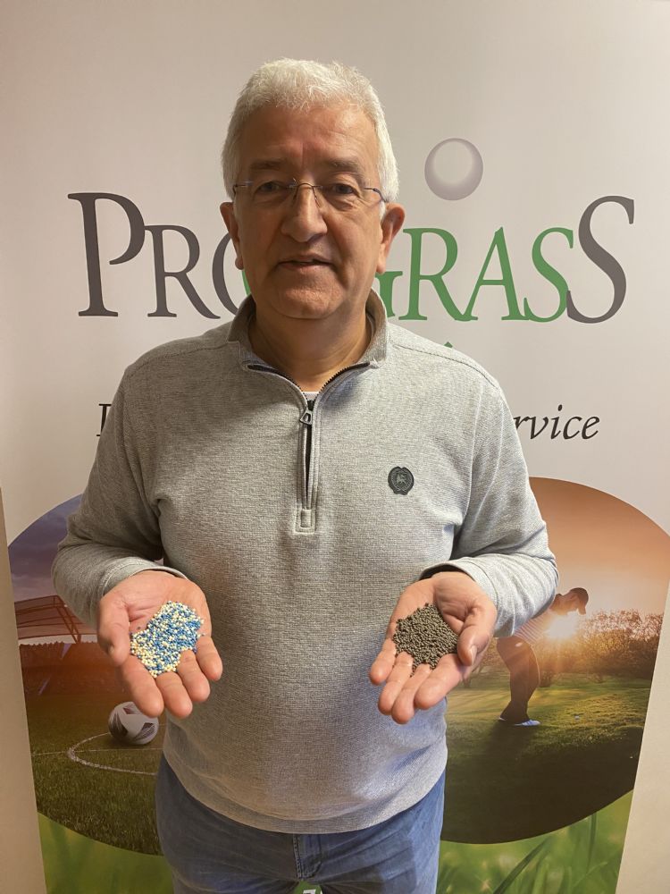 'Maar naast de voordelen van organisch heeft mineraal ook een aantal voordelen. De belangrijkste zijn de snelle werking en de prijs. En dat is wel van belang bij bemesting van sportvelden. Zeker in het voorjaar wil je een vlotte beschikbaarheid van voeding voor een goede start. En het budget is ook altijd een issue bij het onderhoud. Wat je het beste kunt doen, is kiezen voor een combinatie. Dan heb je de voordelen van beide: een snelle werking en betaalbaarheid, maar ook een positieve impuls voor het bodemleven en minder uitspoeling. Kortom, er is een behoorlijk verschil tussen organisch en mineraal, maar door ze te combineren heb je maximaal profijt van beide.'