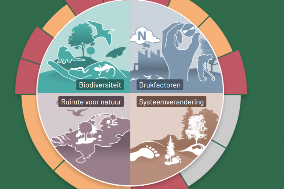 Door middel van een verdeling in vier thema's en 14 doelen wordt de stand van zaken op het gebied van biodiversiteit inzichtelijk gemaakt. Thema's zijn bijvoorbeeld 'Ruimte voor natuur' en 'Systeemverandering' en doelen 'Achteruitgang bestuivers ombuigen' (doel 4) en 'Biodiversiteit in de landbouw vergroten' (doel 7). In grafieken worden 'stoplichtkleuren' gebruikt om te bepalen of Nederland op koers ligt een doel te behalen (groen), er extra inspanning gedaan moet worden (oranje) of dat het doel juist uit zicht raakt (rood).