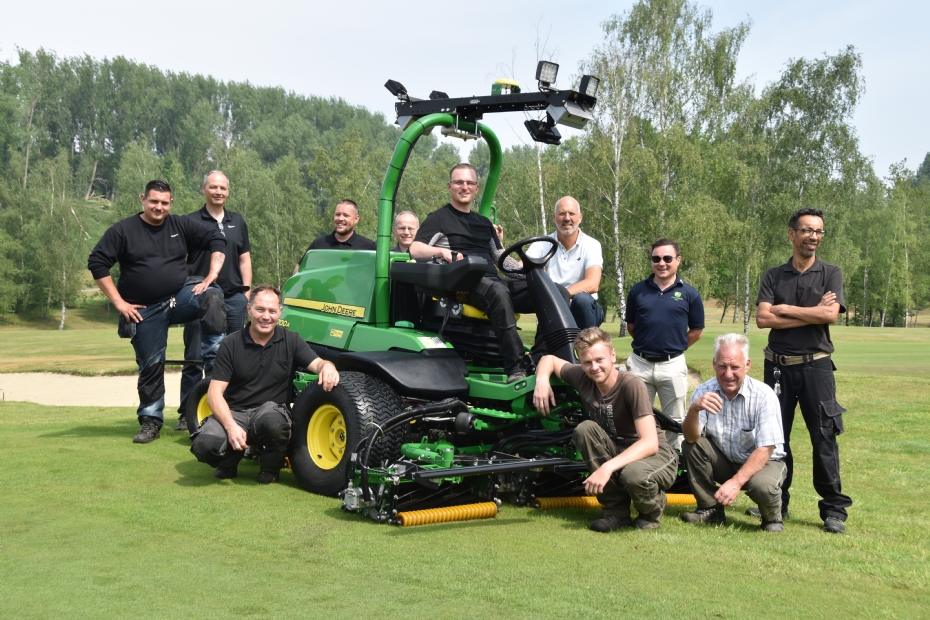 Het Brunssumse greenkeepersteam bij de aflevering van een nieuwe machine