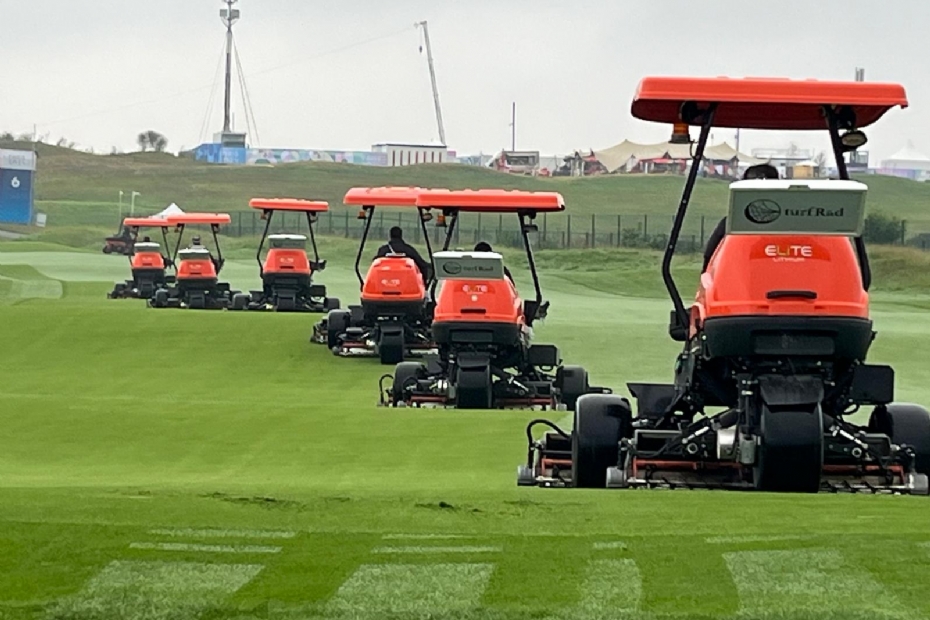 Barry Lotgerink Bruinenberg was in Parijs toegevoegd aan het team fairways. 'Ik zat in de oranje slang', zegt hij grappend. Hij doelt hiermee op de oranje gekleurde elektrisch fairwaymaaiers van Jacobsen die een rijtje hun maaibeurten afwerkten. Een jaar geleden maakte hij de overstap van Burggolf Zoetermeer naar AH Vrij. Bij dit laatste bedrijf is hij als uitvoerder verantwoordelijk voor alle sportparken in het Westland. Toen hij zich opgaf voor de kennismaking tijdens het Frans Open, werkte hij nog op de golfbaan.