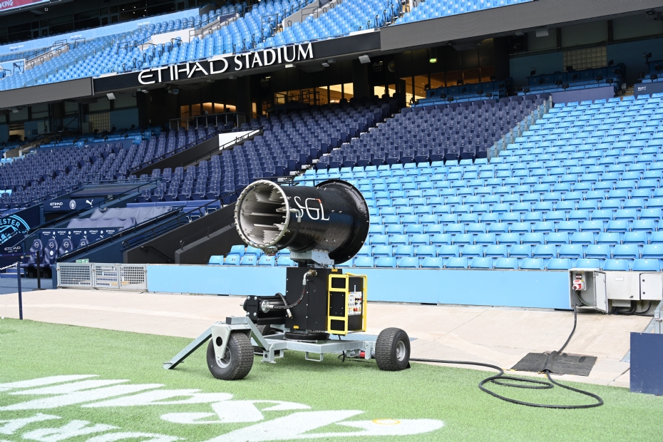 De groundsmen van Manchester City gebruiken opvallend vaak het woord clean. Wat ze daarmee bedoelen, blijkt als ze uitleggen wat er gebeurt na een wedstrijd. De velden worden dan herhaaldelijk schoongemaakt, zowel in de lengte- als breedterichting, met een vloot van Honda-cirkelmaaiers. Ieder grassprietje of polletje dat tijdens de wedstrijd uit het veld is gekomen, wordt kort daarop verwijderd. Het resultaat is een mat die ongelooflijk dicht en gesloten is. Je zou zweren dat er nooit op gevoetbald is. De ziektedruk van schimmels zou heel beperkt zijn. Manchester City heeft in oktober voor het laatst met een fungicide gespoten. Garreth wijst in dat verband op de levensgrote SGL-ventilatoren die rondom het veld staan opgesteld. Die ventilatoren staan - als het even kan - 24/7 aan. Op die manier is er voldoende luchtbeweging in het stadion en krijgen schimmels geen schijn van kans.
