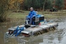 It is a strange machine. It is sort of a cross-breed between a tank of World War I and a pedal boat. There is only one big difference: both pedal boats and tanks are no machines with a high fun factor. The Truxor, an amphibian vessel which was designed to clean hard accessible ditches and ponds, clearly is. Jan van Dun of Mobarn Dredging has a lot of fun when he is cleaning the ponds of golf course Herkenbosch in the south of Holland.