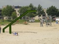 Belangrijk is juist het ervaren van gevaar, het lichaam geeft zelf aan dat je iets aan het doen ben waar je niet aan toe bent. En de volgende keer durf je verder, net als bij een schommel waarbij als het kind groter is, deze harder en hoger zal gaan. Natuurlijk voldoet de Durf~Al aan de normen (NEN-1176) waarin staat dat je een toestel van 3 meter kunt maken, als je maar zorgt voor geschikte valdemping. Aan de aankoop verbindt Stedon dan ook eisen. Het toestel moet in geschikt zand worden geplaatst met voldoende laagdikte. Omdat niet al het zand geschikt is, zal Johan de potentiële koper graag adviseren en zo nodig een monster van het zand beoordelen. Het gaat namelijk niet zozeer om de korrelgrootte, maar om de korrelvorm en de onderlinge verdeling van korrelgrootte. Johan wil benadrukken dat OBB geen leverancier of ontwerper van speeltoestellen wordt: ‘Wij willen het beste onafhankelijke speelruimteadvies geven en daarbij past niet het leveren van speeltoestellen. Alle rechten en ook de opbrengsten van de Durf~Al zijn overgedragen aan de producent Stedon.’