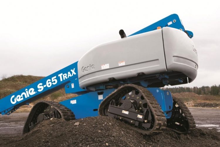 Genie heeft daar goed naar gekeken en getracht deze bekende nadelen te elimineren zonder de voordelen van een rupsaandrijving aan te tasten. De uitkomst is een rupssysteem met 2 rupsen per as, dus 4 in totaal. Deze rupsen kunnen onafhankelijk van elkaar 22 graden op en neer kantelen waarmee ze de oneffen grond of de laadklep van een vrachtwagen netjes volgen. Het actieve pendelassysteem zorgt ervoor dat alle 4 de rupsen ook in ruw terrein contact blijven houden met de bodem voor maximale terreinvaardigheid. De Genie Trax heeft net als een bandenmachine slechts één joystick voor het rijden en waarop men met de duim kan sturen. Ook stuurt hij net als een bandenmachine gewoon met de twee voorste (rubber) rupsen waardoor hij nauwelijks sporen achterlaat.